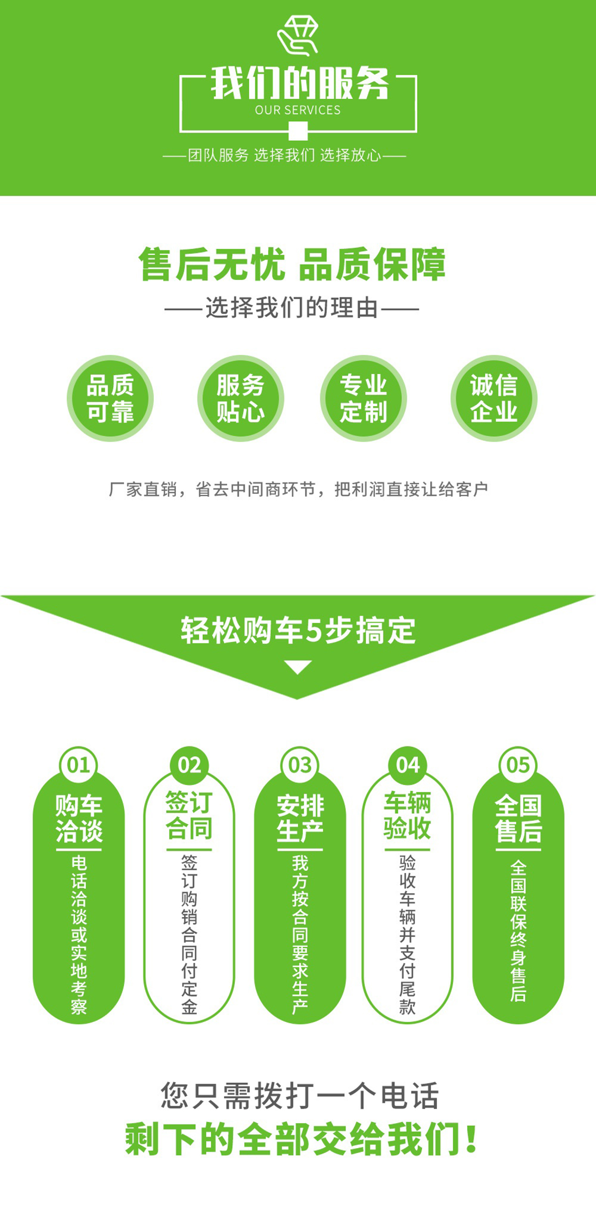 ·創(chuàng)優(yōu)質(zhì)服務(wù)企業(yè); 造用戶滿意產(chǎn)品; 樹國內(nèi)知名品牌!公司堅持以“質(zhì)量求生存、信譽(yù)求發(fā)展、科技創(chuàng)新路、服務(wù)創(chuàng)品牌”的經(jīng)營理念,以“誠信、務(wù)實、創(chuàng)新、進(jìn)取”為企業(yè)宗旨,不斷提升自身產(chǎn)品質(zhì)量,開發(fā)適應(yīng)市場需求物美價廉的多功能專用汽車! 我們將謁誠為您提供更好、更快、更優(yōu)質(zhì)的服務(wù)!