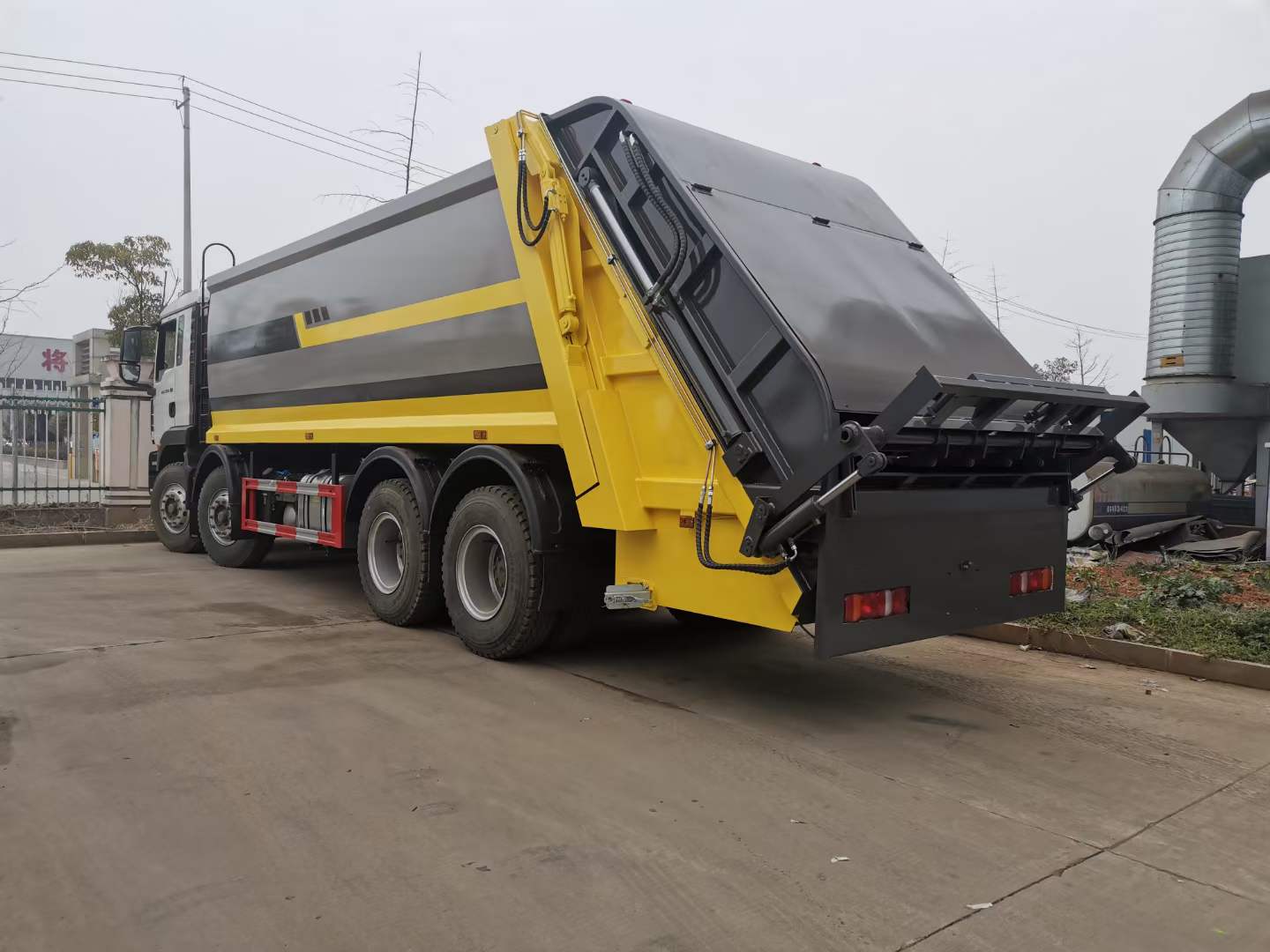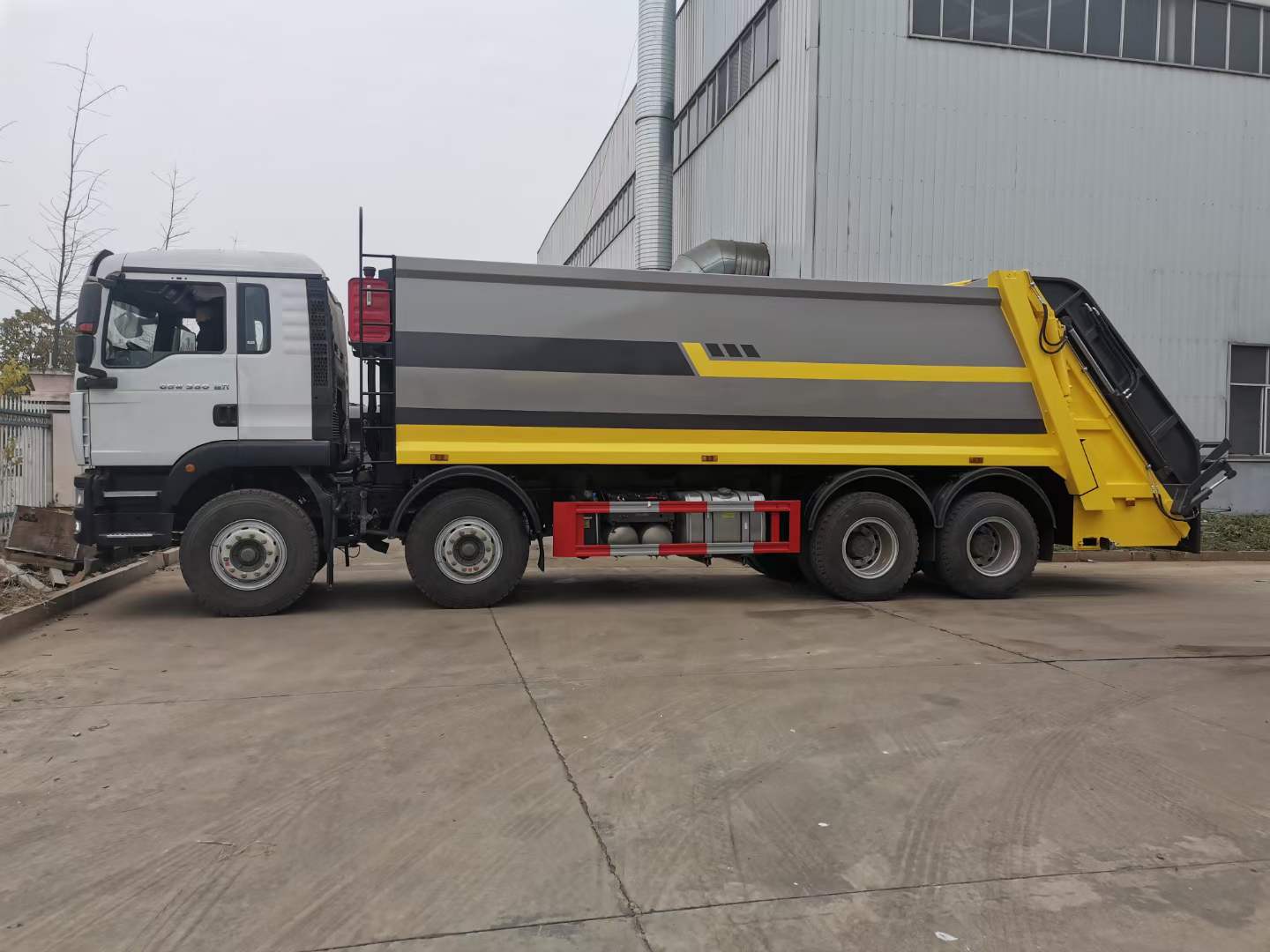 底盤配置: 配置一:濰柴350馬力,G5-M系列駕駛室,軸距:1800+3800+1350,豪沃10檔變速箱,5.5噸前橋,11噸雙后橋,280大梁,11.00R20鋼絲胎,400L油箱。自動(dòng)空調(diào),四通道ABS,博世方向機(jī),氣囊座椅,電動(dòng)玻璃,中控鎖,搖控鑰匙,可調(diào)節(jié)多功能方向盤,電動(dòng)調(diào)節(jié)帶加熱后視鏡。(換12檔變速箱,16噸輪邊減速橋加8000) 配置二:德國曼350馬力,G5H-W駕駛室;HW19710變速器+HW70法蘭式取力器;H653自調(diào)臂前軸(6噸鼓式);MCJ11沖焊自調(diào)臂雙后橋(曼11噸鼓式);雙層車架(8+4/280);ZF8198方向機(jī);前后標(biāo)準(zhǔn)版多片簧(11/11/10);中位保險(xiǎn)杠(金屬);帶ABS(4S/4M);標(biāo)準(zhǔn)版排氣系統(tǒng);無氣候包。11.00R20;速比4.63;選裝前后螺旋簧懸置;選裝300L油箱;選裝整車前下防護(hù);選裝中國重汽智能通A版 上裝配置:1,新款弧形箱體,增加箱體容積,整車更美觀,箱體為碳鋼制作,底箱及填充器采用加厚鋼板,耐腐蝕使用壽命長,一層油漆噴涂處理。2,裝載循環(huán)時(shí)間=25S;垃圾排出時(shí)間≤25S;填料提升角度≥95°,壓縮比例為1/3-1/2,一裝部分具備雙向壓縮和蠕動(dòng)壓縮功能帶。3,新款結(jié)構(gòu)加大填充器,手電一體操作模式,帶駕駛室操作,帶駕駛室一鍵卸料功能,3308軸距以上配遠(yuǎn)距離遙控器,尾部裝置可以選裝垃圾翻轉(zhuǎn)斗,掛桶翻轉(zhuǎn)板或者大落地斗。4,CAN總線控制方式,光電開關(guān)加延時(shí)雙系統(tǒng)控制,降低故障率,方便維修。5,帶夜間照明裝置,6方)及以上車型帶雙污水箱,污水箱排水球閥和排水蓋,增加排水管,防止濺水,人性化設(shè)計(jì)。6,標(biāo)配選用:威森搏樂油缸,威森搏樂多路閥,3308軸距以上配備壓實(shí)閥(背壓閥),所有車型標(biāo)配單泵。5000軸距、后八輪車型標(biāo)標(biāo)配雙聯(lián)泵,大油量多路閥。 選裝配置:大落地斗,帶后擺臂,另帶單一掛桶裝置,尾部密封蓋手動(dòng)/氣缸控制,雙聯(lián)泵(多路閥聯(lián)數(shù)增加,液壓泵加大,液壓油箱加大) |